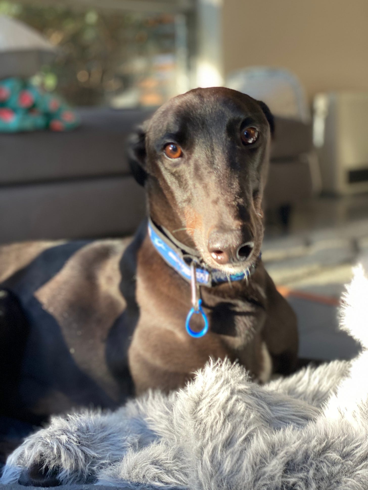 Nine days after her funeral, and not a few months after my “no-more-new love, ever” promise, I clipped the lead to the collar of a foster rescue dog, Alfonzo. A 32-kilo, black, injured racing dog with ears held to the side and a slightly wary look. I loaded him into the back of the wagon.